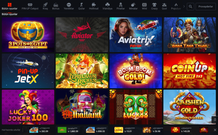 Pin Up Oyunları: Slotlar, Aviator, Canlı Kazino və daha çox